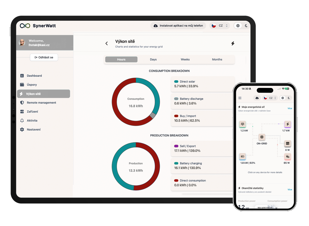 Systém dynamicky reaguje na tržní ceny elektřiny: automaticky optimalizuje výrobu, nákup i prodej pro vaše maximální úspory a výdělky.